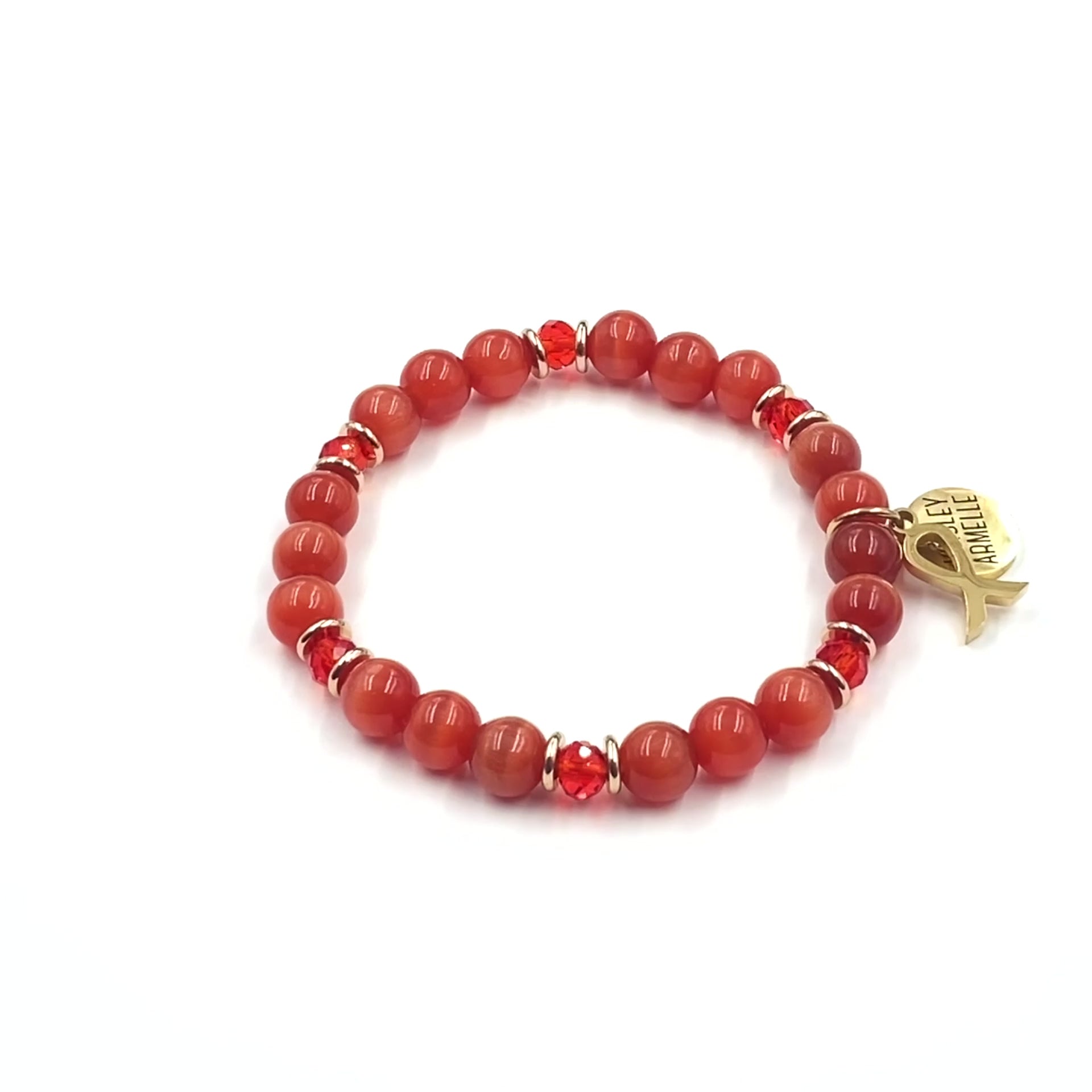 Gold And Red Awareness Pledge Hypoallergenic Nickel Free Beaded Stretch Bracelet. Custom 18K Yellow Gold Ion Plated Stainless Steel Charm Accents And Designed With Love In Texas. Size Small, Medium, Large, and Extra Large Ranging From 6.25 - 7.25 Inch Circumference With Custom Sizing Available On Select Pieces.