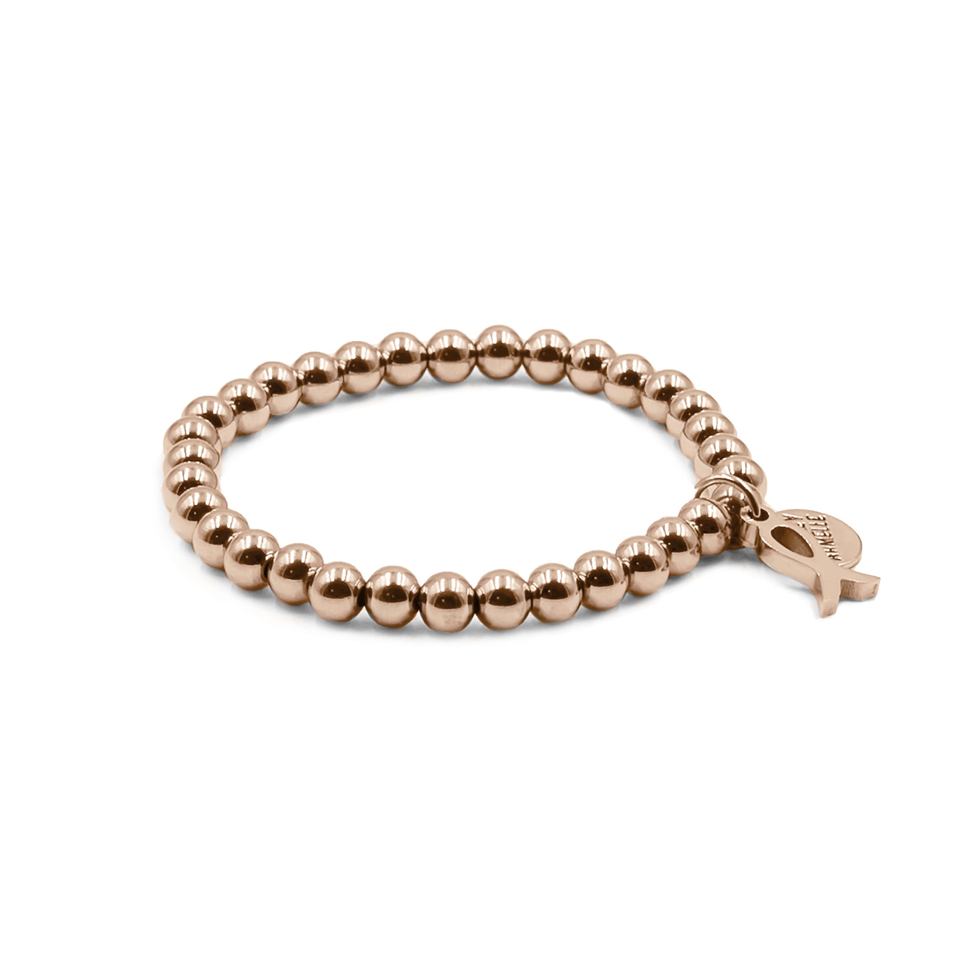 Rose Gold Awareness Metal Pledge Hypoallergenic Nickel Free All Metal Beaded Stretch Bracelet. Custom Charm Accents And Designed With Love In Texas. Size Small, Medium, Large, and Extra Large Ranging From 6.25 - 7.25 Inch Circumference With Custom Sizing Available On Select Pieces.