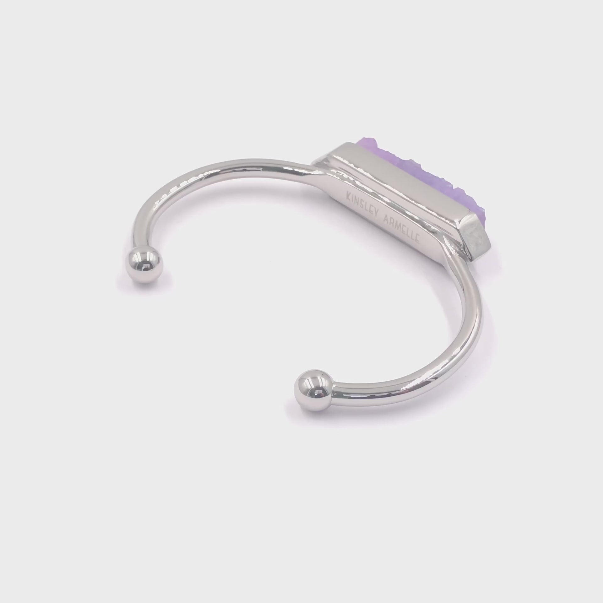 Silver And Purple Hypoallergenic Nickel Free Bangle Cuff Bracelet. Custom Druzy Raw Natural Quartz Stone Accents And Designed With Love In Texas. Size Small, Medium, Large, and Extra Large Ranging From 6.25 - 7.25 Inch Circumference With Custom Sizing Available On Select Pieces.