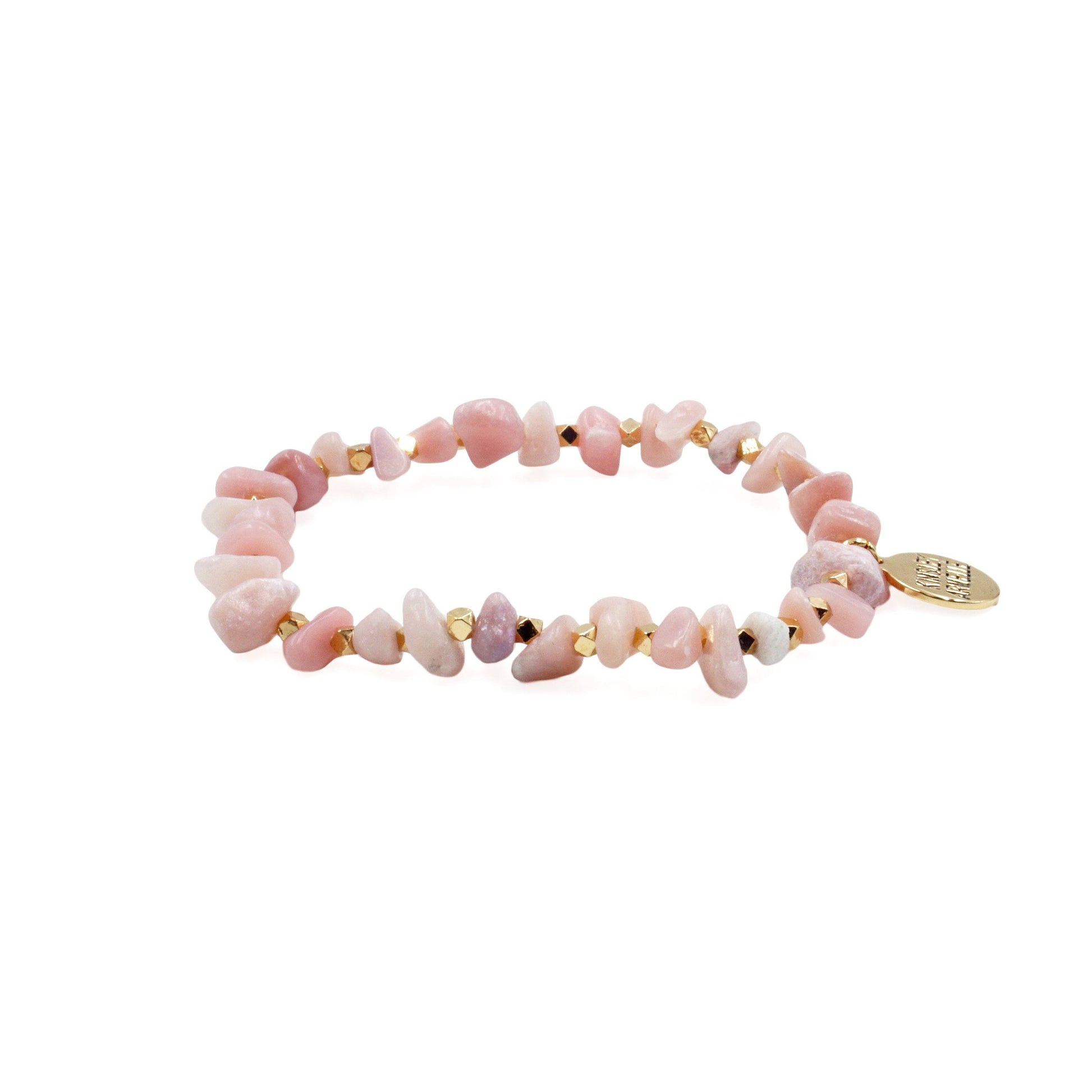Gold And Pink Chip Chunky Hypoallergenic Nickel Free Beaded Stretch Bracelet. Custom Decorative Accent Beads Accents And Designed With Love In Texas. Size Small, Medium, Large, and Extra Large Ranging From 6.25 - 7.25 Inch Circumference With Custom Sizing Available On Select Pieces.