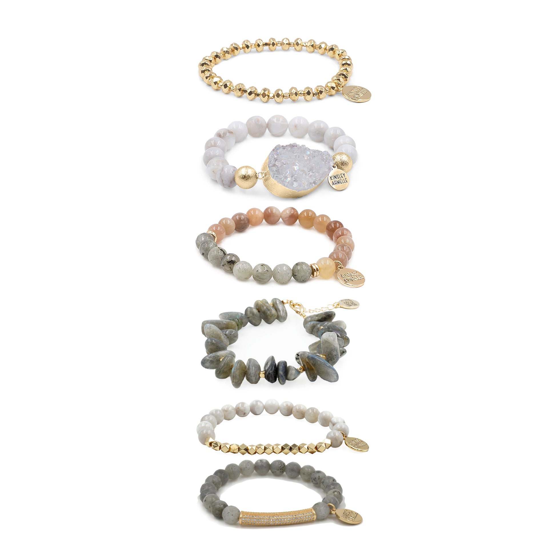 Gold And Green Beads Chip Cubed Green Pave Stackable Hypoallergenic Nickel Free Bracelet Stack Set. Custom Druzy Raw Natural Quartz Stone Accents And Designed With Love In Texas. Size Small, Medium, Large, and Extra Large Ranging From 6.25 - 7.25 Inch Circumference With Custom Sizing Available On Select Pieces.