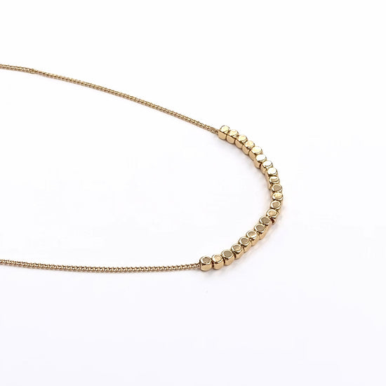 Gold And White Cubed Hypoallergenic Nickel Free Dainty Pendant Necklace. Custom Decorative Accent Beads Accents And Designed With Love In Texas. Size 18 or 22 Inch Length, Plus 3 Inch Attached Necklace Extender With Custom Sizing Available On Select Pieces.
