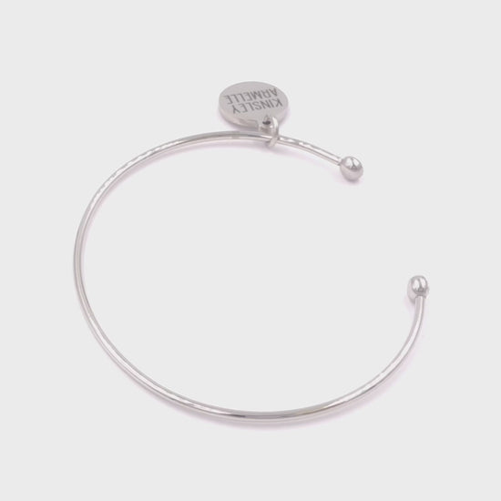 Silver And Gray Pave Hypoallergenic Nickel Free Dainty Bangle Cuff Bracelet. Custom Zircon Gemstones Pave Rhinestones Accents And Designed With Love In Texas. Size Small, Medium, Large, and Extra Large Ranging From 6.25 - 7.25 Inch Circumference With Custom Sizing Available On Select Pieces.