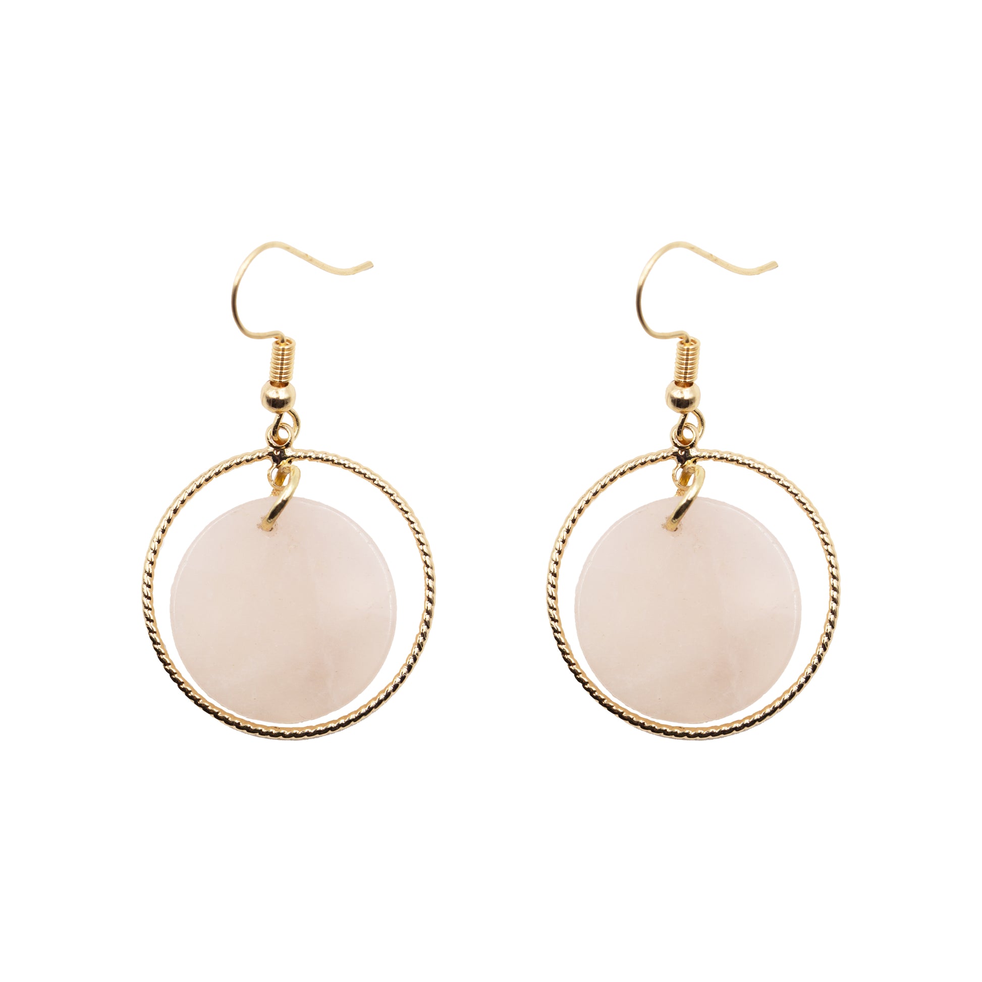 Gold And Pink Dangle Natural Stone Crystal Gemstone Featherweight Hypoallergenic Nickel Free Drop Earrings. Custom Druzy Raw Natural Quartz Stone Accents And Designed With Love In Texas. Size 1 Inch Diameter With Custom Sizing Available On Select Pieces.