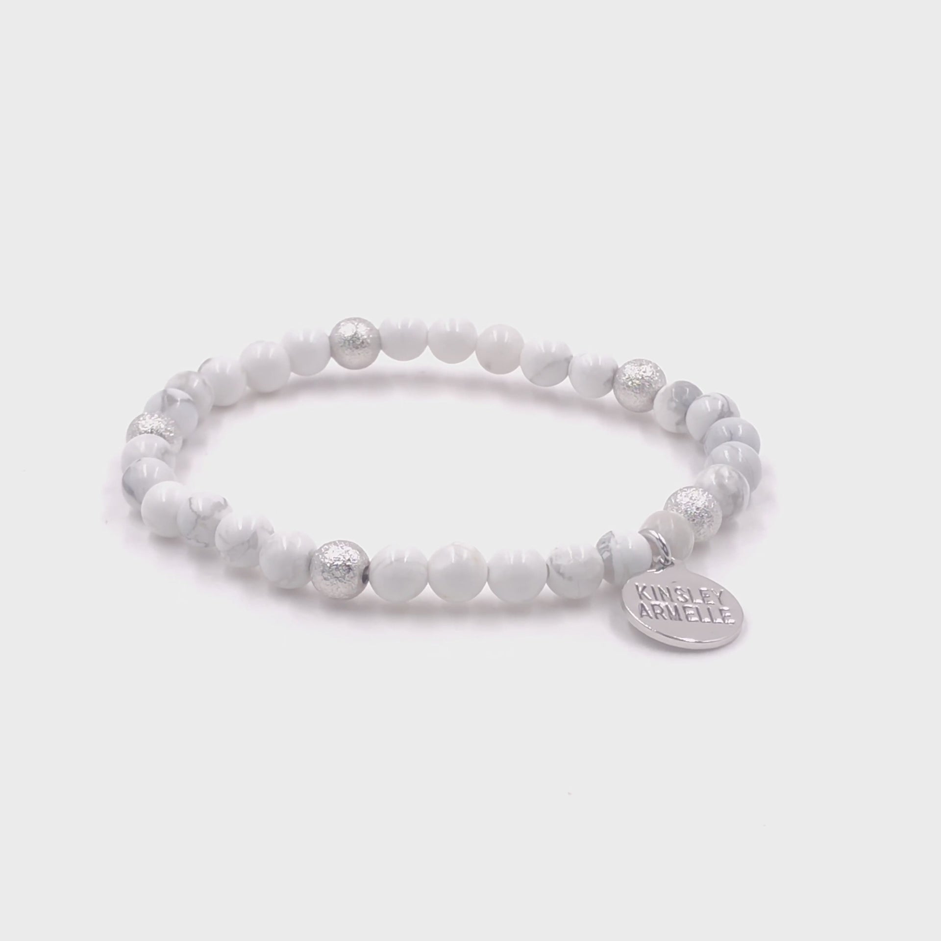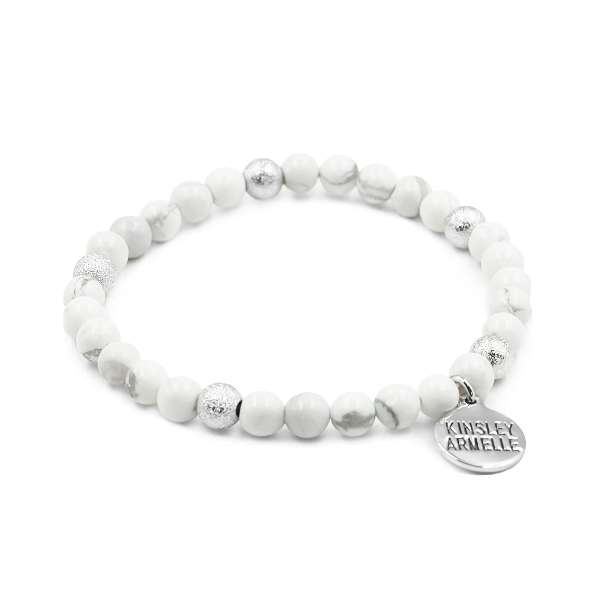 Silver And White Geometric Marble Station Hypoallergenic Nickel Free Beaded Stretch Bracelet. Custom Decorative Accent Beads Accents And Designed With Love In Texas. Size Small, Medium, Large, and Extra Large Ranging From 6.25 - 7.25 Inch Circumference With Custom Sizing Available On Select Pieces.