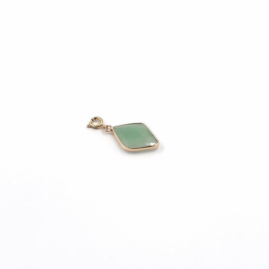 Gold And Green Diamond Geometric Natural Stone Crystal Gemstone Hypoallergenic Nickel Free Charm Accessory. Custom Raw Natural Stone Accents And Designed With Love In Texas. Size 1.25 Inches Length x 0.50 Inch Width With Custom Sizing Available On Select Pieces.