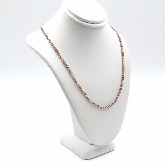 Rose Gold Curb Mens Hypoallergenic Nickel Free All Metal Chain Necklace. Custom Lobster Clasp Accents And Designed With Love In Texas. Size 18, 26 or 32 Inch Length, Plus 3 Inch Attached Necklace Extender With Custom Sizing Available On Select Pieces.