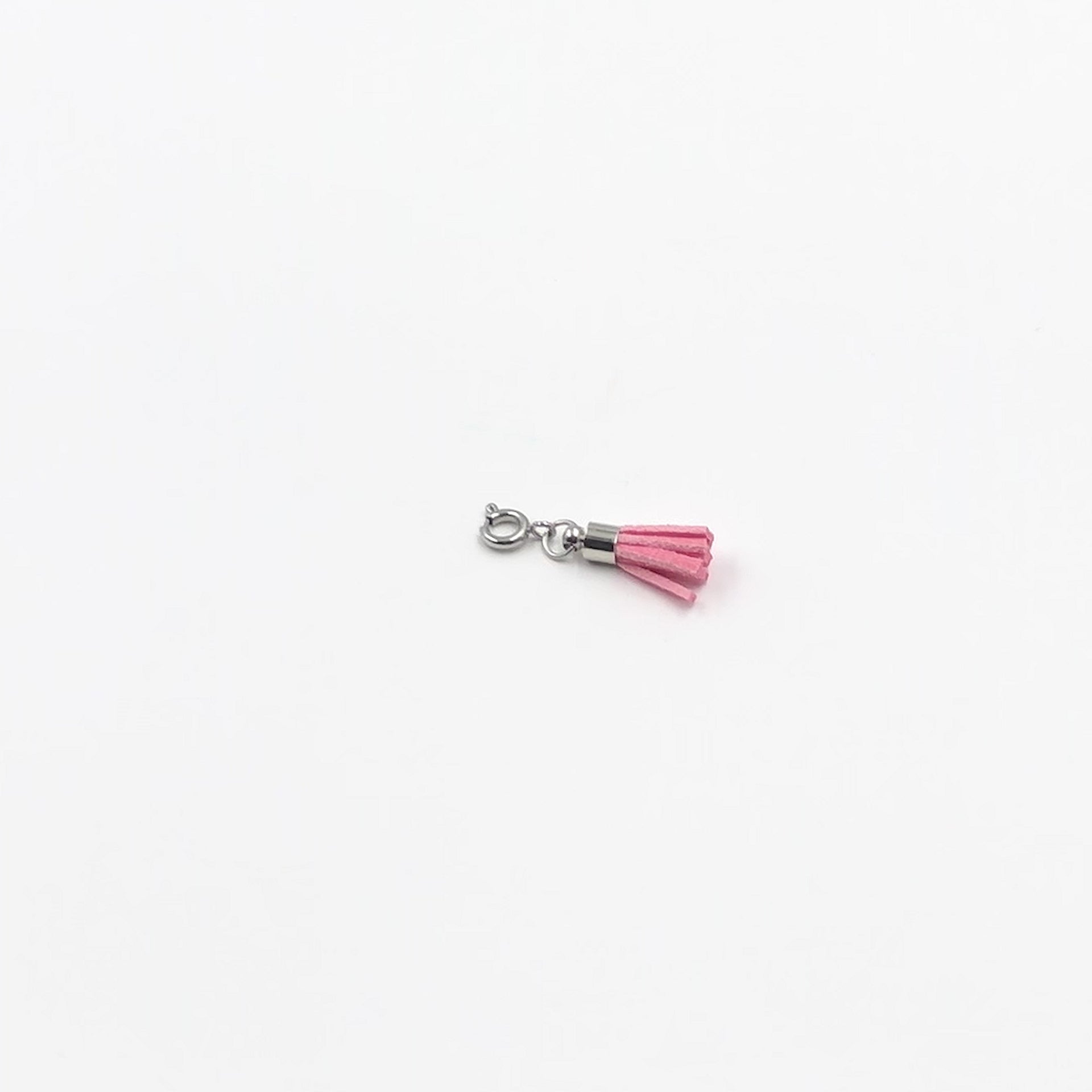 Silver And Pink Fringe Hypoallergenic Nickel Free Charm Accessory. Custom Tassels Accents And Designed With Love In Texas. Size 0.75 Inch Length x 0.25 Inch Width With Custom Sizing Available On Select Pieces.
