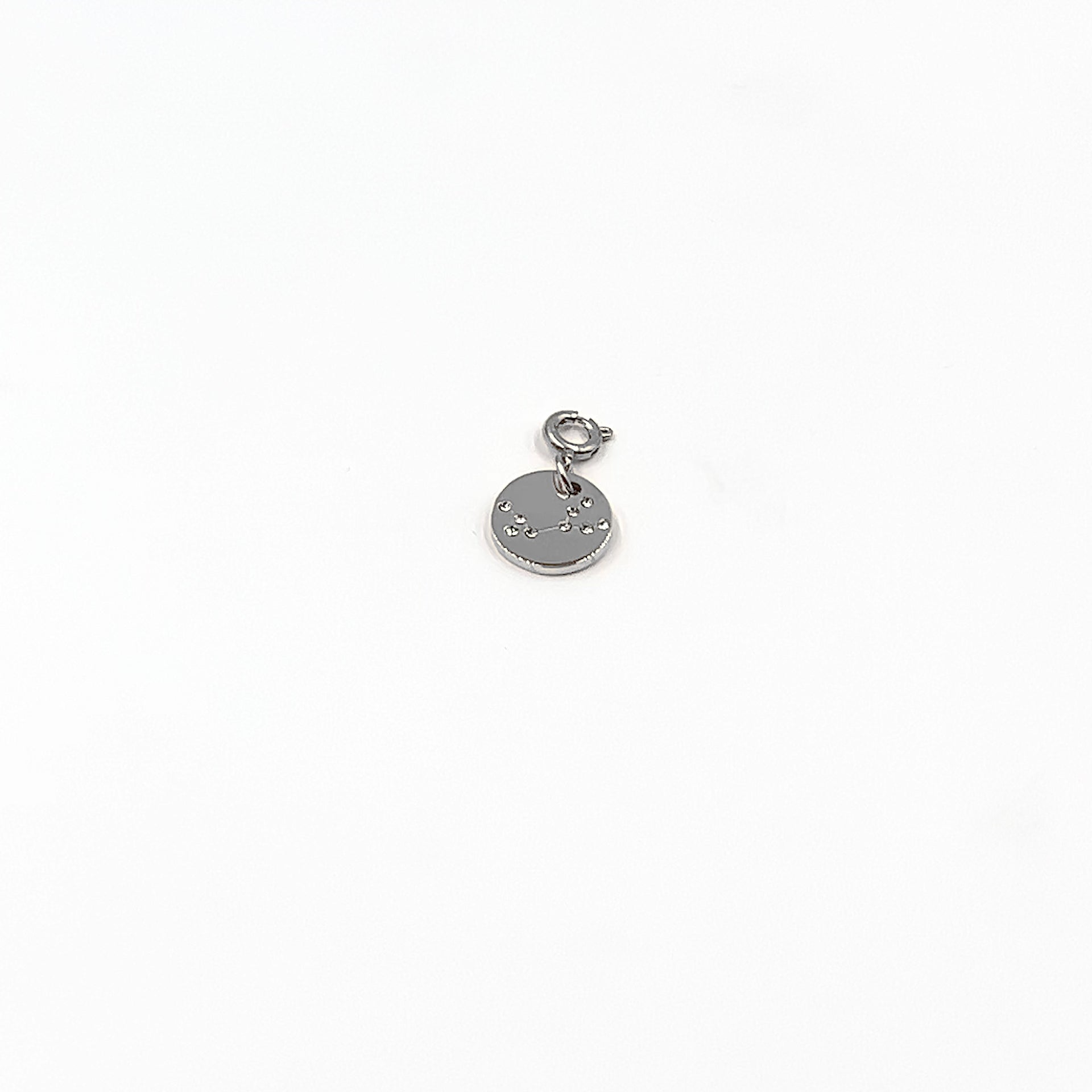 Silver And Gray August Coin Constellation Astrology Disc Galaxy September Zodiac Hypoallergenic Nickel Free Charm Accessory. Custom Zircon Gemstones Accents And Designed With Love In Texas. Size 0.50 Inch Diameter With Custom Sizing Available On Select Pieces.