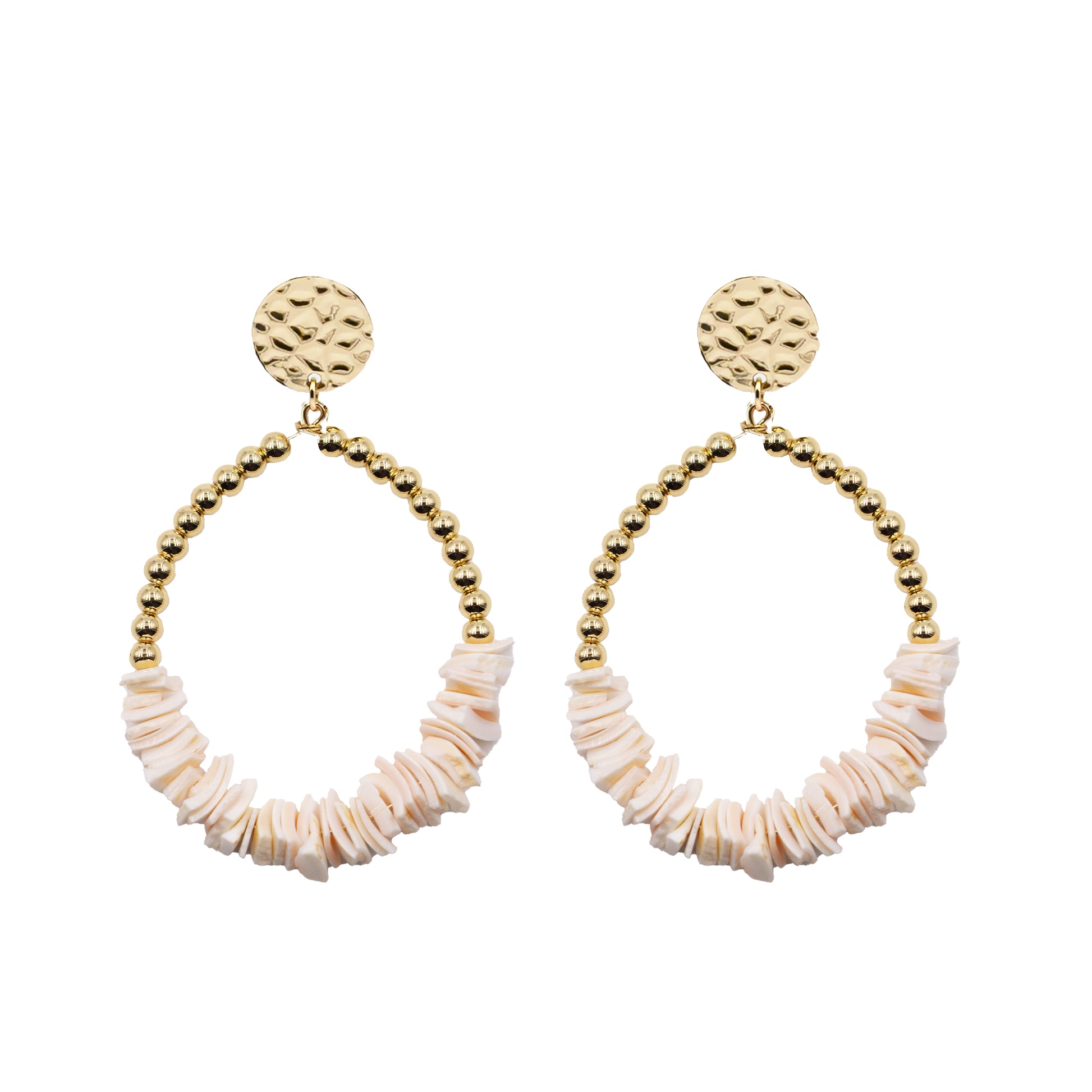 Gold And Pink Beads Dangle Lightweight Hypoallergenic Nickel Free Statement Hoop Earrings. Custom Decorative Accent Beads Accents And Designed With Love In Texas. Size 2 Inches Width X 2 Inches Length With Custom Sizing Available On Select Pieces.