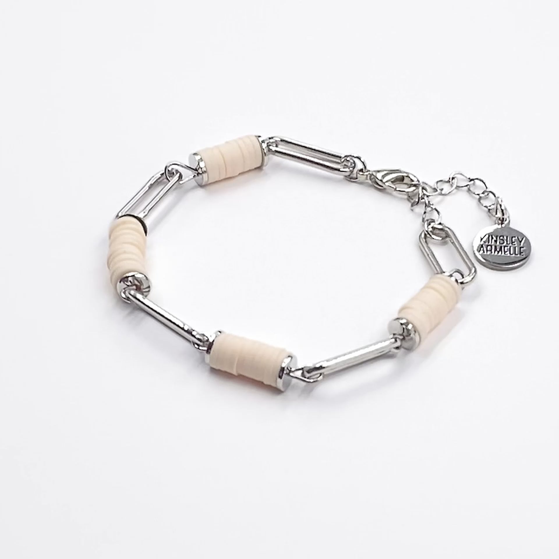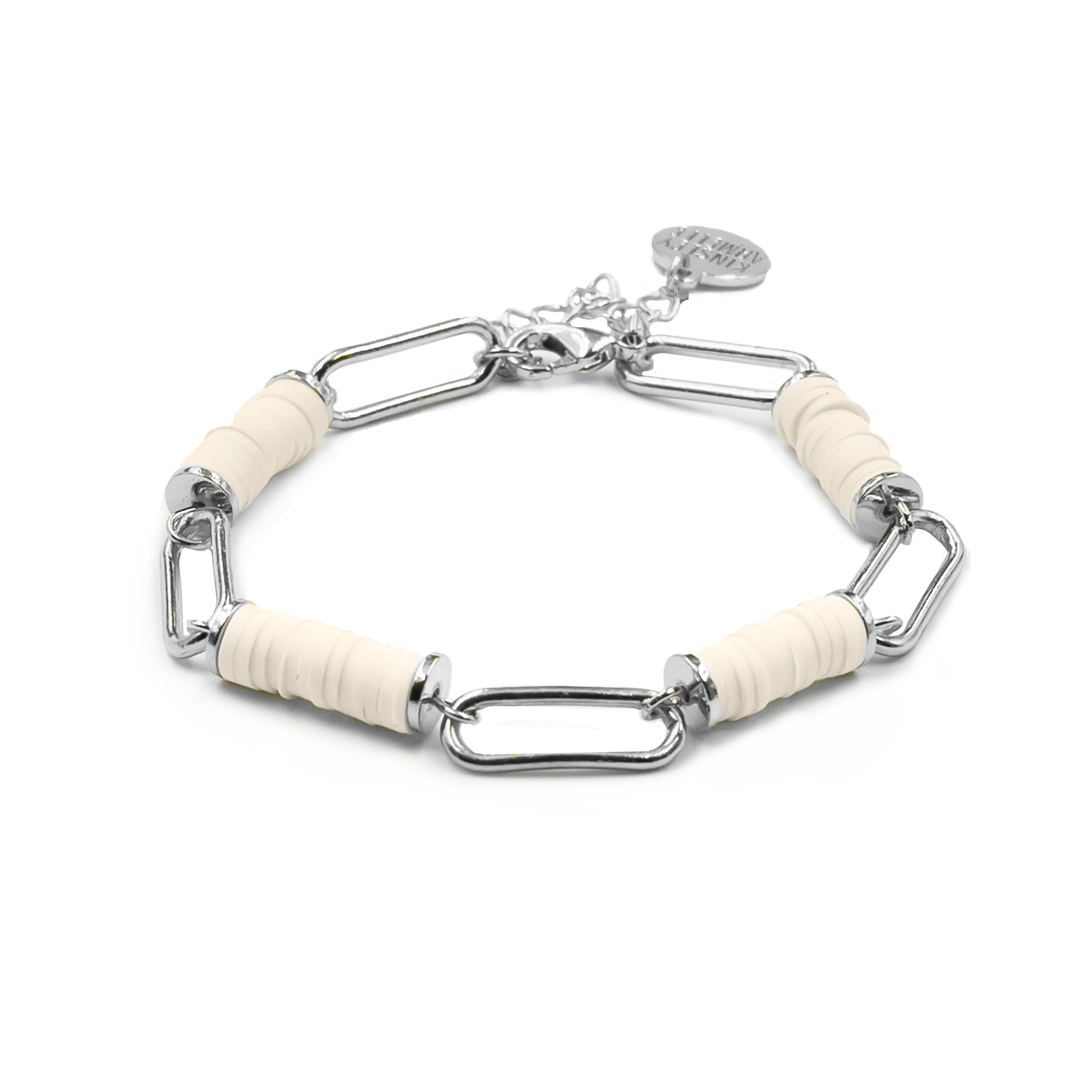 Silver And Brown Clasp Heishi Station Hypoallergenic Nickel Free Adjustable Bracelet. Custom Clay Decorative Accent Beads Accents And Designed With Love In Texas. Size 6.5 - 8 Inch Circumference With Custom Sizing Available On Select Pieces.