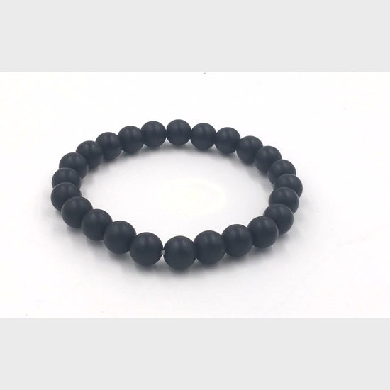 White And Black Matte Natural Stone Hypoallergenic Nickel Free Beaded Stretch Bracelet. Custom Kinsley Armelle Engraved Logo Accents And Designed With Love In Texas. Size Small, Medium, Large, and Extra Large Ranging From 6.25 - 7.25 Inch Circumference With Custom Sizing Available On Select Pieces.