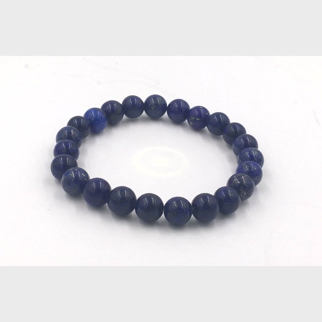 White And Blue Glossy Natural Stone Hypoallergenic Nickel Free Beaded Stretch Bracelet. Custom Kinsley Armelle Engraved Logo Accents And Designed With Love In Texas. Size Small, Medium, Large, and Extra Large Ranging From 6.25 - 7.25 Inch Circumference With Custom Sizing Available On Select Pieces.