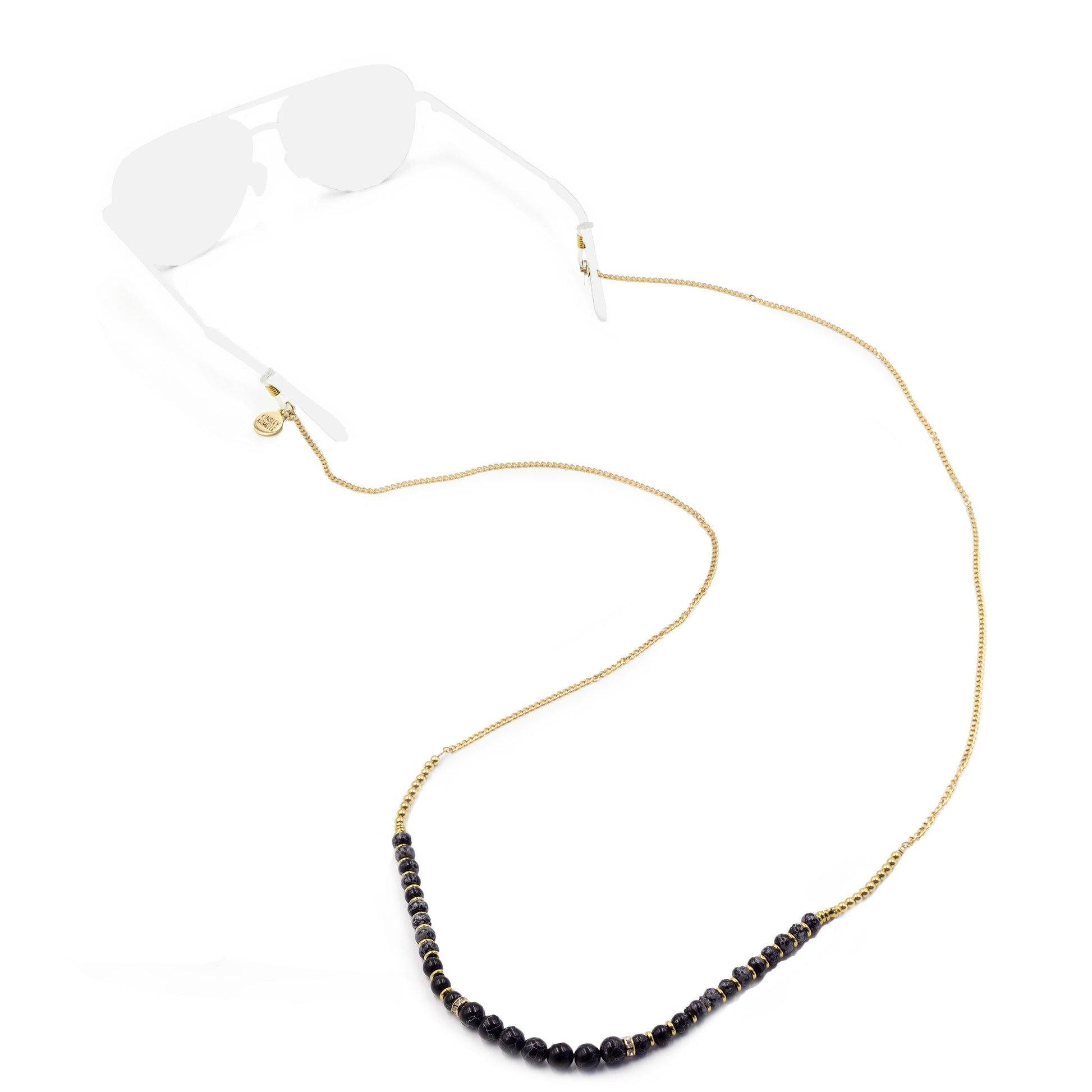 Gold And Black Beads Hypoallergenic Nickel Free Sunglasses Strap Accessory. Custom Decorative Accent Beads Accents And Designed With Love In Texas. Size 43 Inches Length With Custom Sizing Available On Select Pieces.