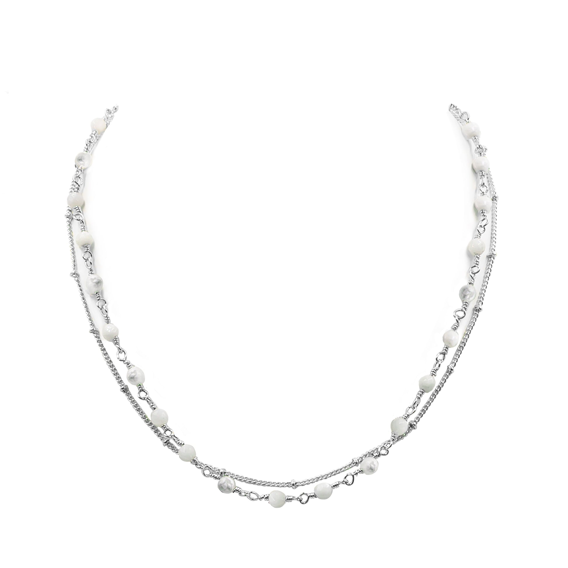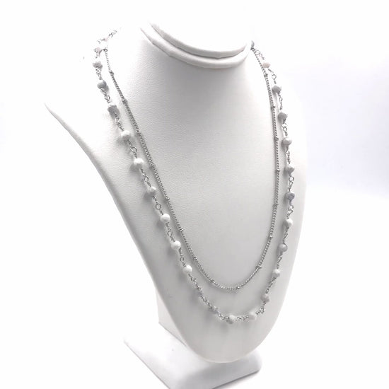 Silver And White Marble Multistrand Natural Stone Raw Station Hypoallergenic Nickel Free Layered Necklace. Custom Howlite Decorative Accent Beads Accents And Designed With Love In Texas. Size 14 or 18 Inch Length, Plus 3 Inch Attached Necklace Extender With Custom Sizing Available On Select Pieces.